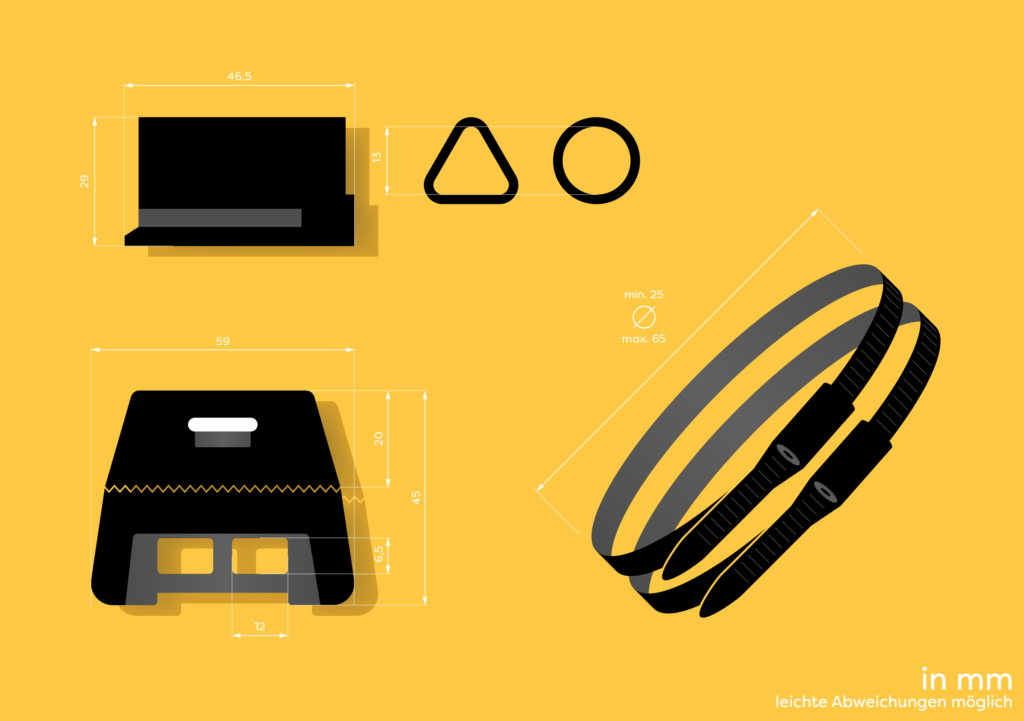 The support surface of the bracket and the two fastening straps adapt to almost any frame width. This means that the bracket for U-locks is just as suitable for wider e-bike frames as it is for slimmer e-scooter components and more.