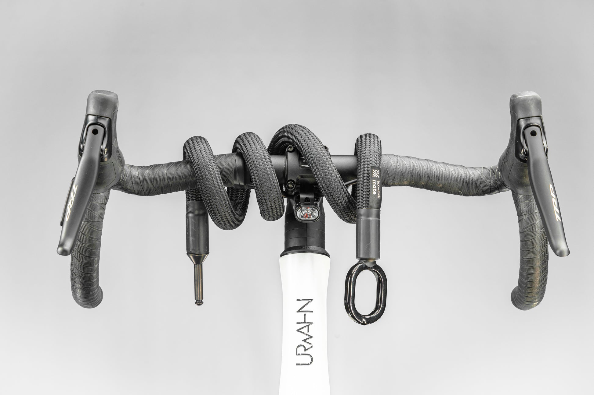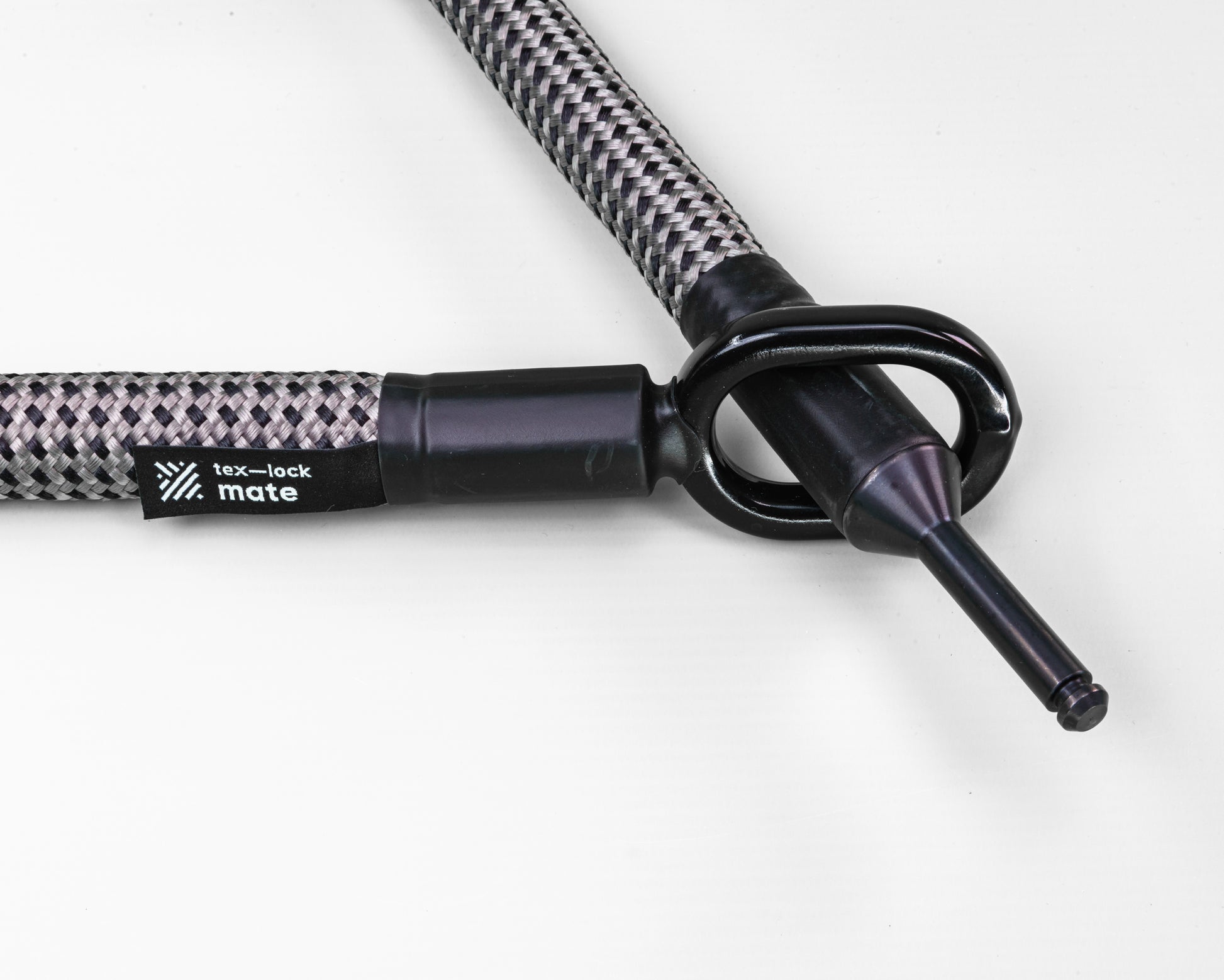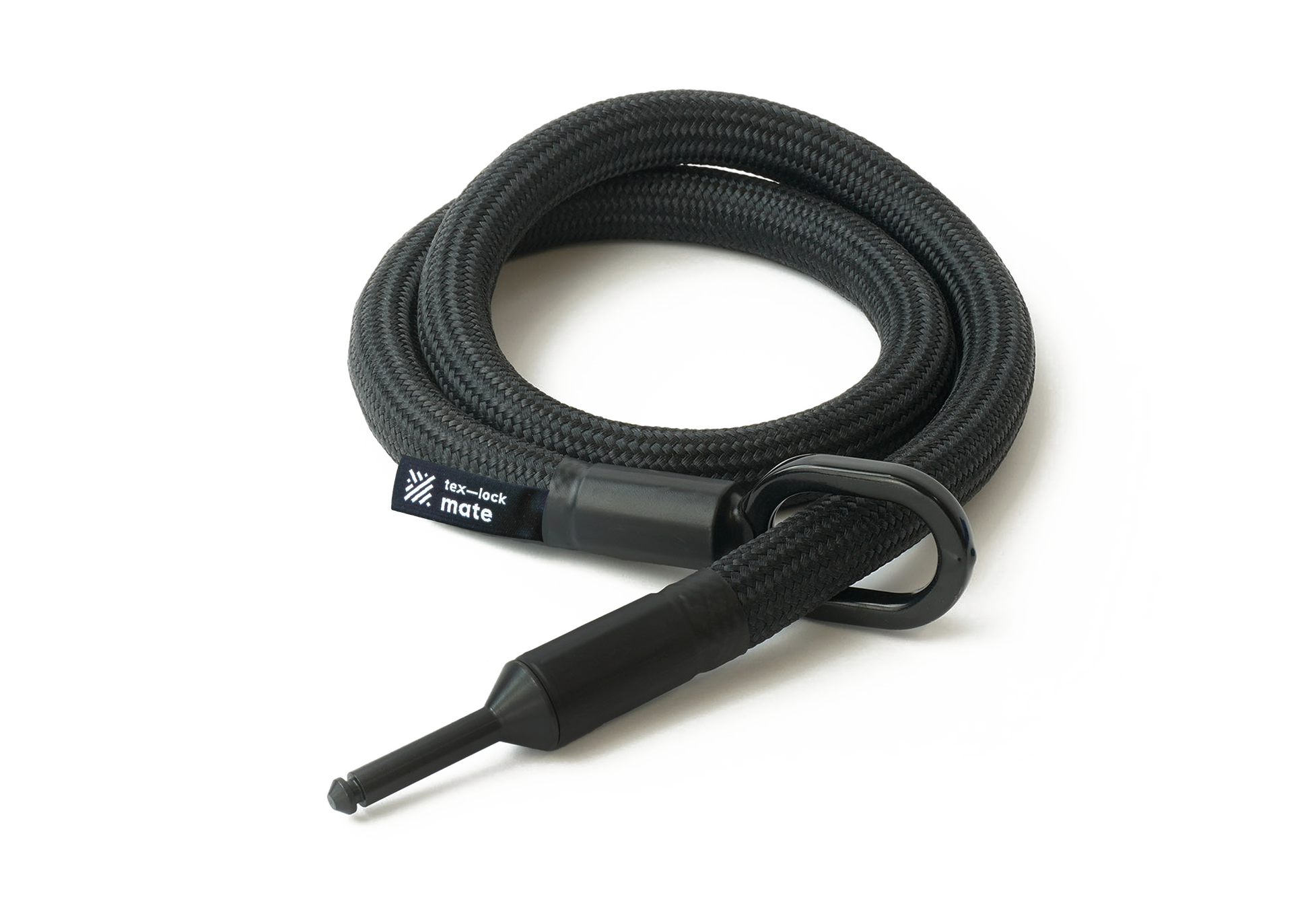 The tex–lock mate is a textile insertion cable for frame locks. With a rubberized metal eyelet at one end and a hardened universal bolt at the other, the textile cable can be easily combined with all standard frame locks. Thanks to the practical length of 120 cm, you can find a solid object anywhere to secure your bike from being pushed or carried away.