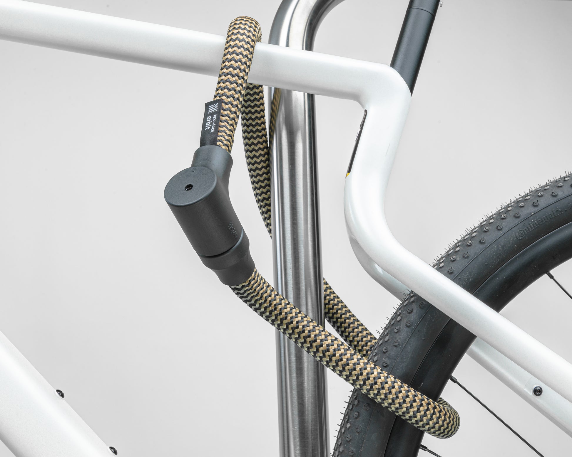 With this textile cable lock, you can lock your bike anywhere quickly, easily and securely. The tex–lock orbit impresses with its easy handling and elegant design. The all-rounder in 100 cm (S), 120 cm (M), or 160 cm (L) consists of a high-tech rope with a hardened steel core and a robust lock body. The high-tech fibers of the rope make it resistant to saws, cutting tools, fire and paint scratches. The robust lock body withstands various violent attacks and makes the tex–lock orbit particularly secure against lock picking.